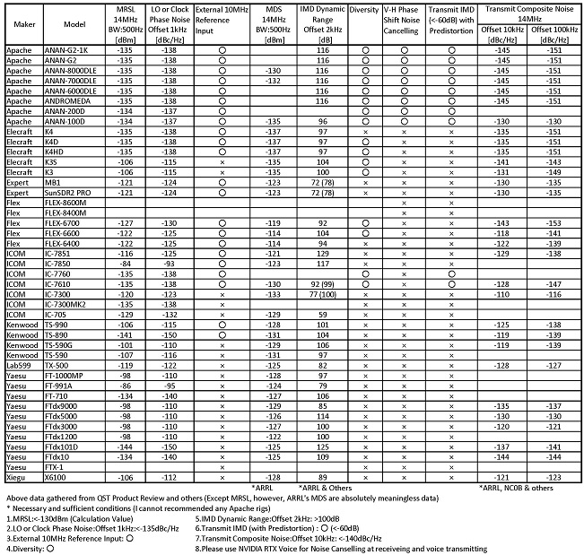 HF Transceiver Comparisons (Includes LO or Clock Phase noise comparisons) : JA2GXU