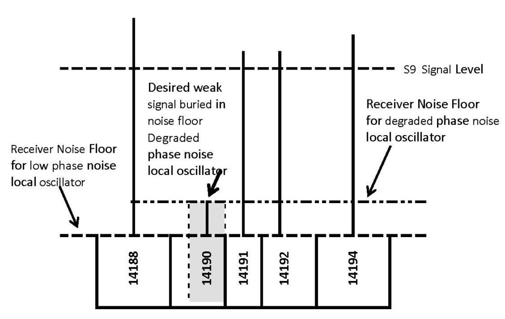 LO phase noise or CO phase noise (offset under 10kHz) and reciprocal mixing effects under the condition of typical DX