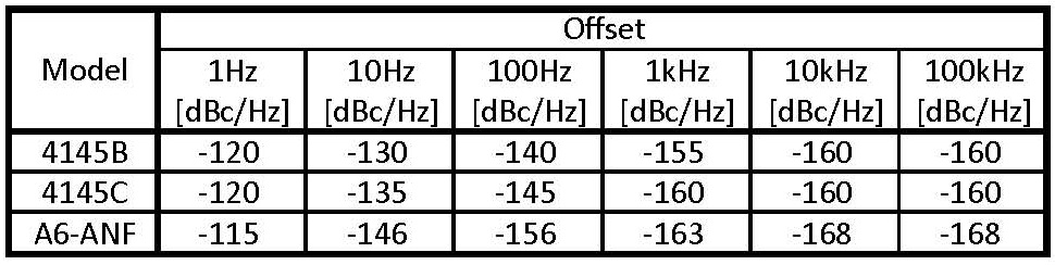 under -140dBc/Hz at 1kHz offset, thus connect through above 4145B /4145C or Quartzlock A6-ANF