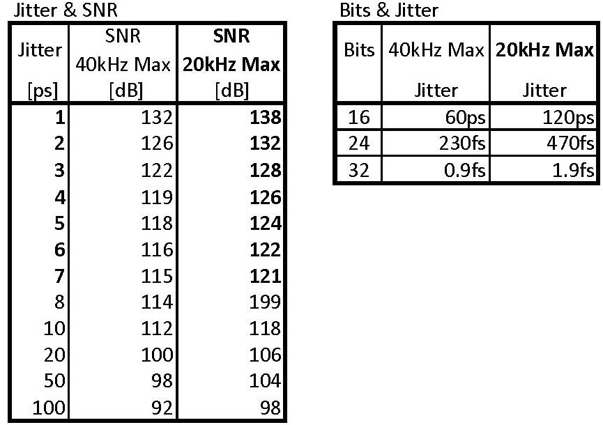 - PCM使用時にはジッターが、7ps以内ですと、SNRが120dB以上になります。