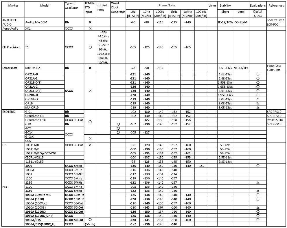 - この様な批判を避ける為には、一般的なRb-OSCを使用した場合は、「二次標準の周波数標準」である事及び、「音像定位の移動が一般的なOCXO/TCXOと比較し十分の一から千分の一程度の音像定位の移動で済む」更に、「SNRの改善は期待出来ない」又は、「SNRは、-90dB程度迄で無雑音化は期待不可能である事」等を明記すべきです。