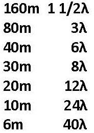 表1.160m帯1-1/2λ水平ループアンテナのバンド別波長