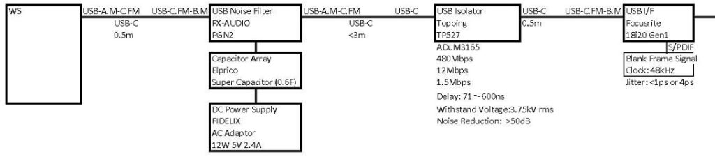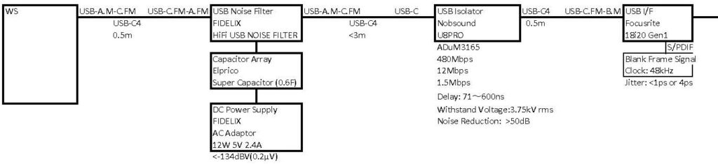 - 尚、USB-AケーブルからUSB-Cケーブル(要変換アダプター)へ変更する事は安定稼働の必須条件になります。それに伴い相当の残留雑音対策が出来ます。